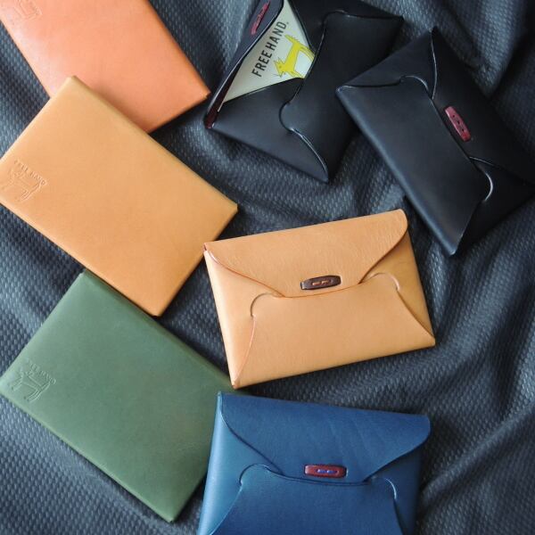 ◇「革で封筒のような作り(デザイン)の名刺入れがあると面白いだろうな・・」こんなアイディアはかなり前からフリーハンド内で持ち上がっていました。